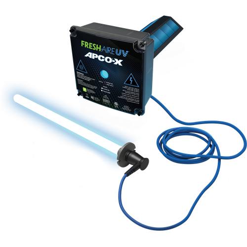 Fresh-Aire TUV-APCOX-DER3 APCO-X Dual 3-yr UV lamp lifetime carbon catalyst 18-32V TUV-APCOX-DER3 includes an additional remote UVC lamp for applications where there is not enough room to install the air purifier over the evaporator