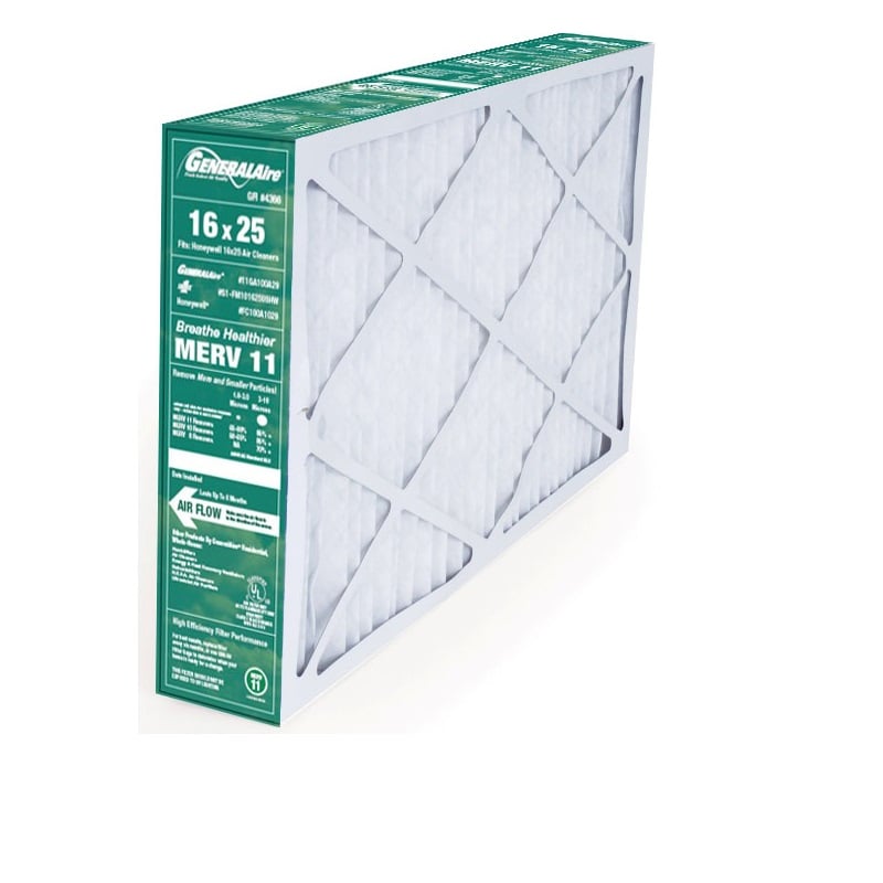 The GeneralAire 4366 GA100A29 is a 16" x25" x4" MERV 11 rated air filter media cartridge and is the correct filter replacement for Honeywell F100 Series and Honeywell F150 Series Media Style Air Cleaners. This General