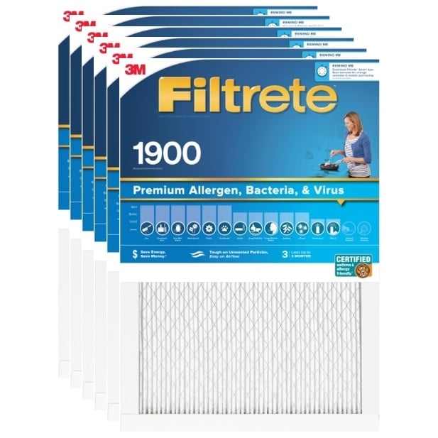 The 3M Filtrete 1900 MPR Premium Allergen Bacteria & Virus Air Filter (Blue) 6-Pack is one of the most advanced high-performance home air filters from Filtrete. The Premium Allergen Bacteria & Virus Air Filter even outperf