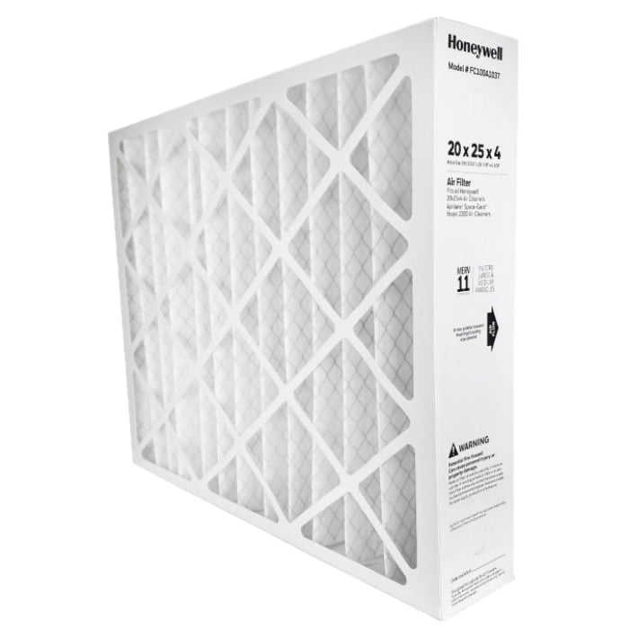The Genuine Honeywell FC100A1037 20x25x4 MERV 11 Furnace & AC Air Filter can be used in all compatible size air ducts and Honeywell air cleaners requiring a 20″ x 25″ x 4″ filter. This Honeywell air filter fits