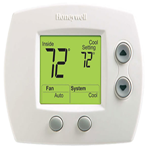 The Honeywell FocusPro 5-1-1 Programmable Thermostat offers a large backlit screen and an easy-to-read digital display that prominently offers both room and set temperature. The Honeywell FocusPRO thermostat includes built-in inst