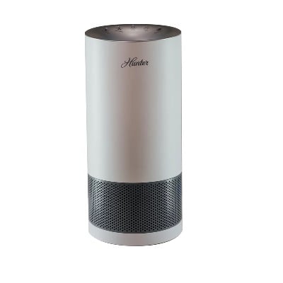 The Hunter HP400WHG Cylindrical Tower Air Purifier – White – Gray is perfect for travel or small rooms. The Hunter HP400WHG features a true HEPA filter that removes up to 99.97% of airborne particles as small as 0.3 microns includ