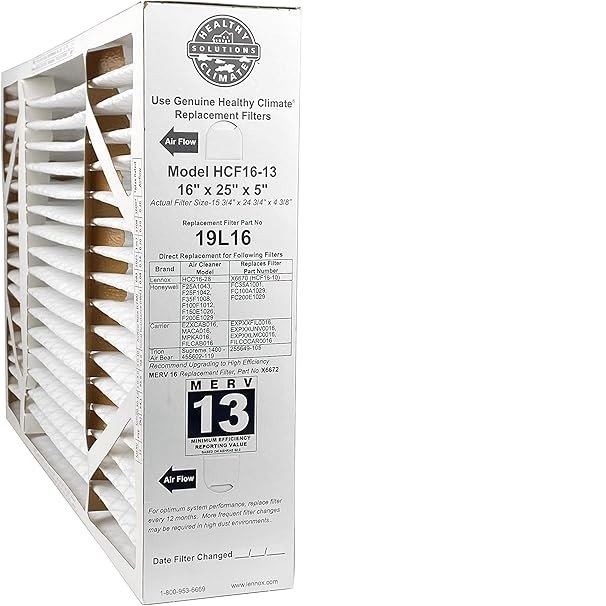 Lennox 19L16 Healthy Climate HCF16-13 25 x 16 x 5 Inch MERV 13Used to replace the following filtersBrand Air Cleaner Model Replaces filter part numberLennox HCC16-28 (Y2920 Y2921) X6670 (HCF16-11)Honeywell F25A1043 F25F10