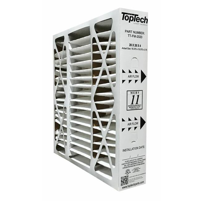 The TopTech TT-FM-2020 TechPure 20x20x4 MERV 11 Filter removes many allergens dust pollen and other airborne pollutants. Top Tech recommends replacing this 20x20x4 MERV 11 air filter every 6 to 12 months for ideal performance and
