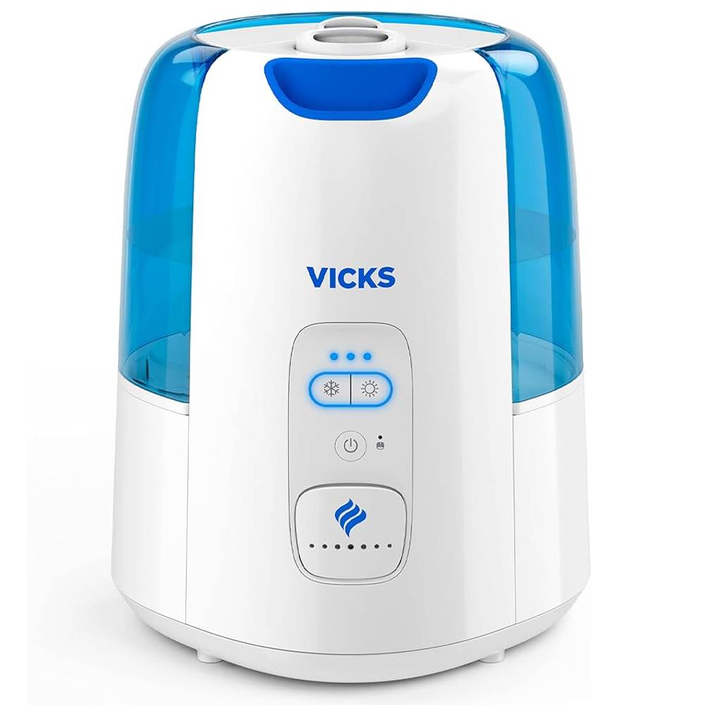 Discover ultimate comfort with the Vicks VWC775 Dual Comfort Cool + Warm Mist Humidifier. This versatile solution delivers the benefits of both cool and warm mist options. Whether you need a refreshing cool mist to combat dry air